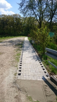 W dniu 12 maja 2017r na terenie naszego kompleksu rekreacyjno - hodowlanego „Łoszak” w Wilkowie grupa Kolegów wykonała ścieżkę z betonowej kostki brukowej. Ścieżka prowadzi od głównej bramy wjazdowej do budynku. Przebudowa ścieżki jest kontynuacją prac rozpoczętych 22 października 2016r. przez Kol. Arkadiusza Huk i Krzysztofa Południak. Przy pracach wielce pomocny okazał się sprzęt Kol. Paweła Bęben, ciągnik z podnośnikiem oraz spalinowa zagęszczarka.